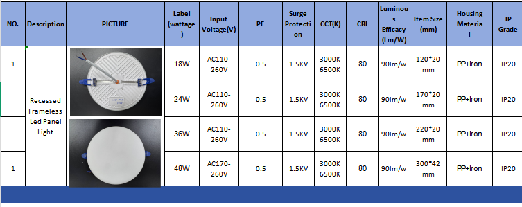 Vores rammeløse forsænkede LED-panellys kombinerer et elegant design med bred alsidighed. Dens høje markedspopularitet har etableret den som et flagskibsprodukt på vores fabrik.